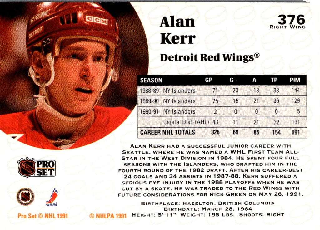 Description: 1991 Pro Set Alan Kerr #376