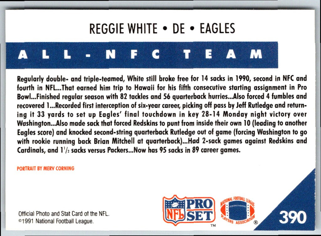 This 1991 Pro Set Bruce Smith/Reggie White #691 Buffalo Bills/Philadelphia Eagles card features a dynamic duo of Hall of Fame defenders. It showcases the iconic images of Smith and White, two of the most celebrated players of their era. Both men had distinguished careers with their respective teams, earning multiple Pro Bowl selections and All-Pro honors. The card provides a great opportunity to own a piece of NFL history and is a must-have for any serious football collector.