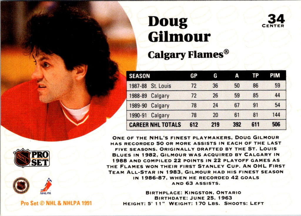 1991 Pro Set Doug Gilmour #34