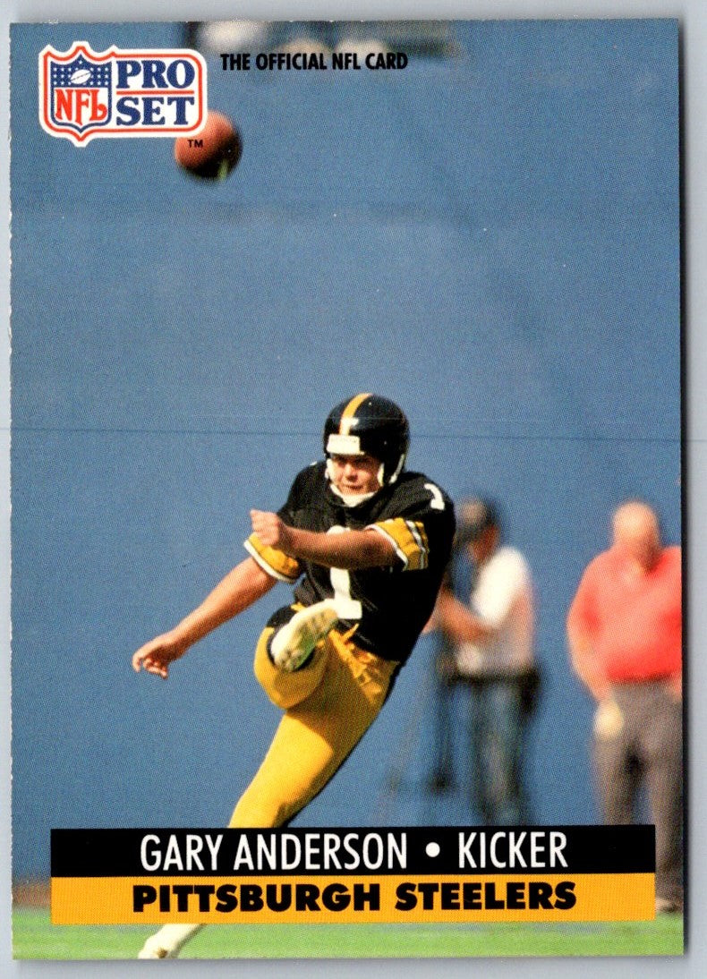 The 1991 Pro Set Gary Anderson #271 Pittsburgh Steelers trading card is a must-have for any collector! Featuring a full-color photo of Anderson in his iconic black and gold uniform, this card is a great addition to any sports memorabilia collection. Anderson was a key member of the Steelers' Super Bowl-winning team in the 1990s and this card is a great reminder of that success. Showcase this card in a display or add it to your favorite set - it's sure to be a hit!