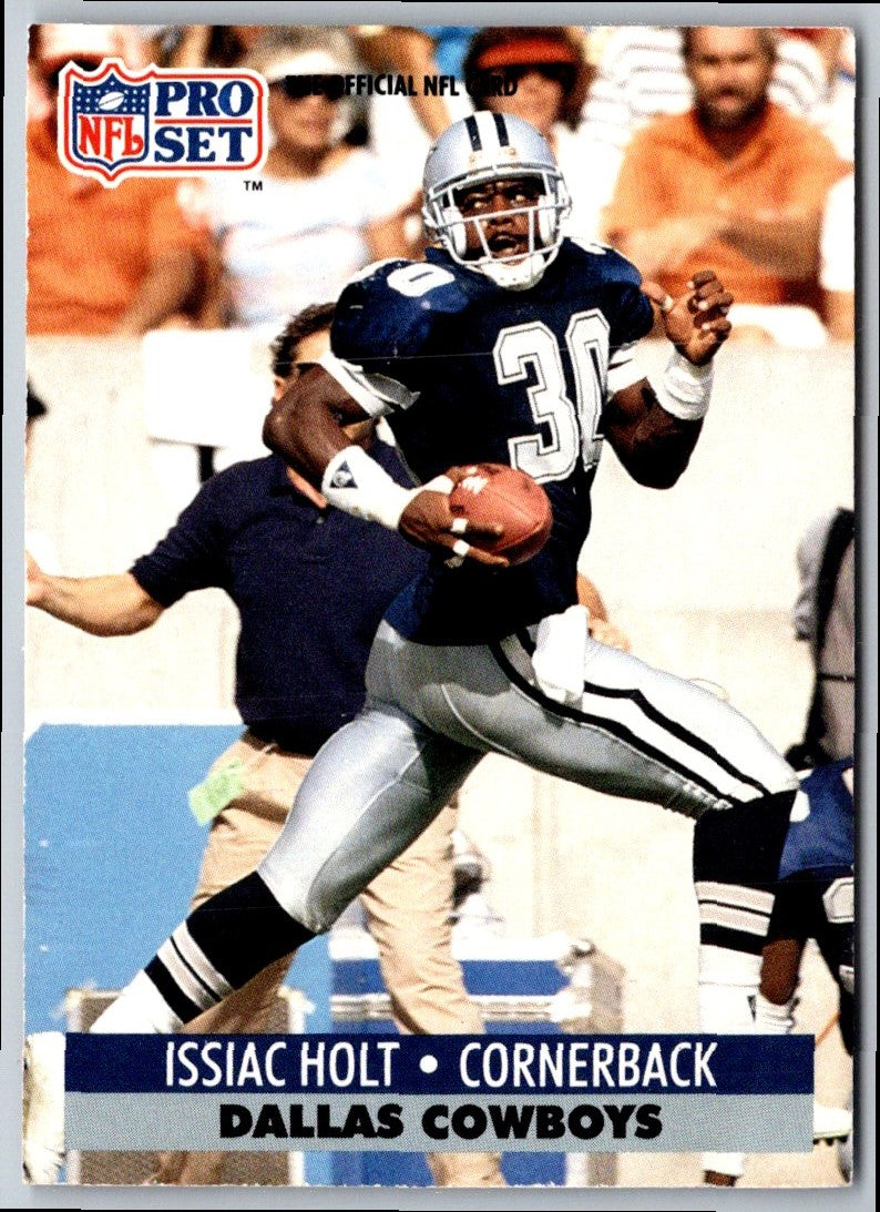 This 1991 Pro Set Issiac Holt #131 Dallas Cowboys card is a true classic. Featuring a stunning photo of the defensive back in his Cowboys uniform, it captures the spirit of America's team. It's a must-have item for any die-hard Cowboys fan or card collector. Add it to your collection today and show your loyalty to the Cowboys.