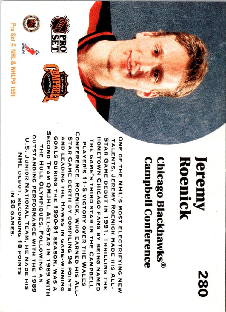 This 1991 Pro Set Jeremy Roenick #280 card is an absolute must-have for any Chicago Blackhawks fan! It features a stunning, full-color portrait of Roenick in his classic, head-to-toe Blackhawks uniform. His stats and biographical information are printed on the back, along with an action shot of the legendary player. This card is perfect for adding to any collection or frame and displaying in your home or office. Get your Jeremy Roenick #280 card today and add a piece of Blackhawks history to your collection!