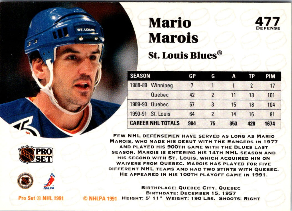 1991 Pro Set Mario Marois #477