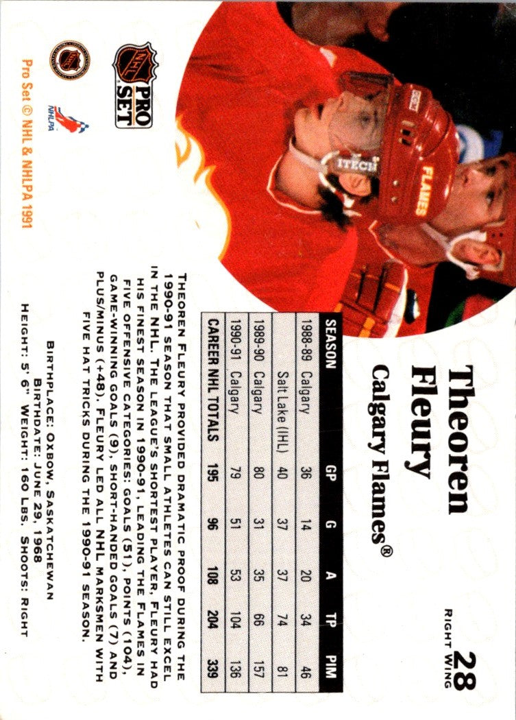 This 1991 Pro Set NHL Sponsor Award of Theoren Fleury from the Calgary Flames is a must-have for any Flames fan or Fleury collector. The card features a crisp team image of Fleury in his Flames jersey, with his name and number in bold print beneath. It is a great way to show your pride and support for your favorite team and player. The card is in near-mint condition, and is a perfect addition to any collection. It is a timeless piece of hockey memorabilia that will bring joy and nostalgia for years to come. Don't miss your chance to add this one-of-a-kind card to your collection today!