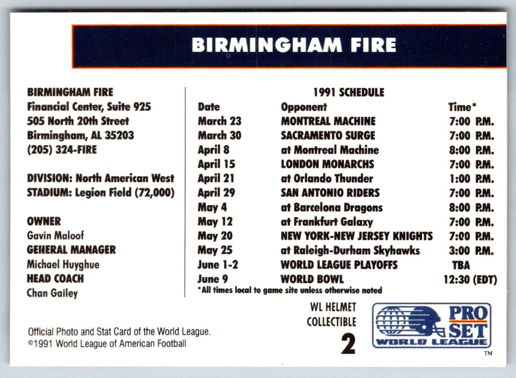 1991 Pro Set WLAF Helmets Birmingham Fire #2