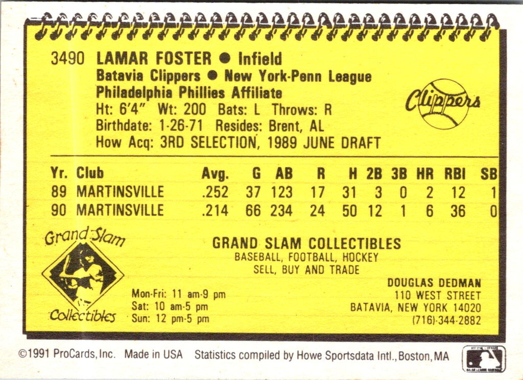 Description: 1991 ProCards Lamar Foster #3490