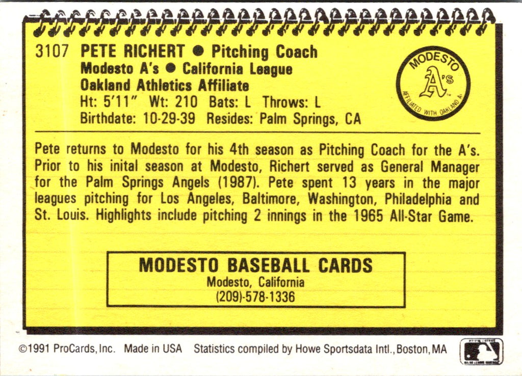 This 1991 ProCards Pete Richert #3107 Modesto A's card is a must-have for any collector looking to add a valuable and unique piece to their collection. This card has stunning color and detail, showcasing Richert in his classic Modesto A's uniform. It is a great way to remember Richert's outstanding career and a tribute to his time with the Modesto A's. The card also features a detailed biography of the player, making it a great addition to any collection. Add this amazing card to your collection today and show your support for Pete Richert and the Modesto A's!