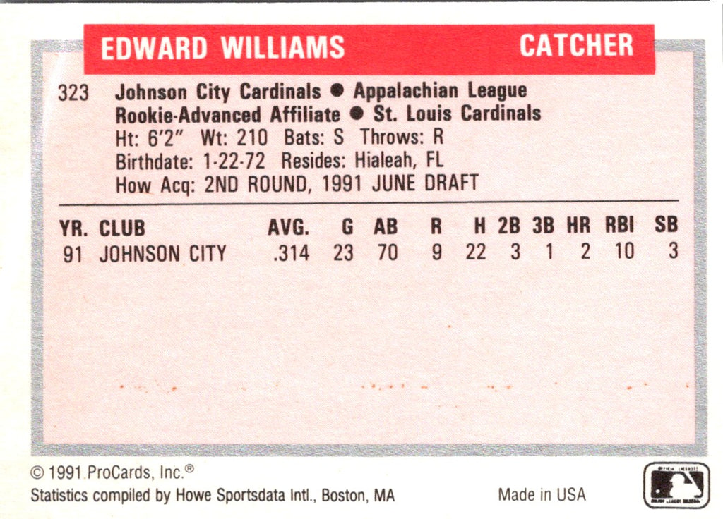 Description: 1991 ProCards Tomorrow's Heroes Eddie Williams #323