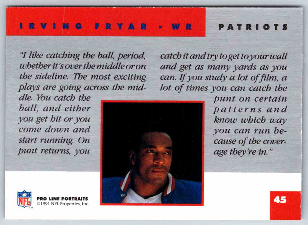 This 1991 Pro Line Irving Fryar #45 jersey is a must-have for any New England Patriots fan. The bright navy blue jersey features the classic Patriots logo on the left chest and the #45 on the back. It's made from 100% polyester mesh fabric for a lightweight and breathable fit. The jersey is inspired by the one Irving Fryar wore during his standout 1991 season, where he was a Pro Bowl selection and led the Patriots to their first Super Bowl appearance. Add this unique piece of Patriots history to your collection today.