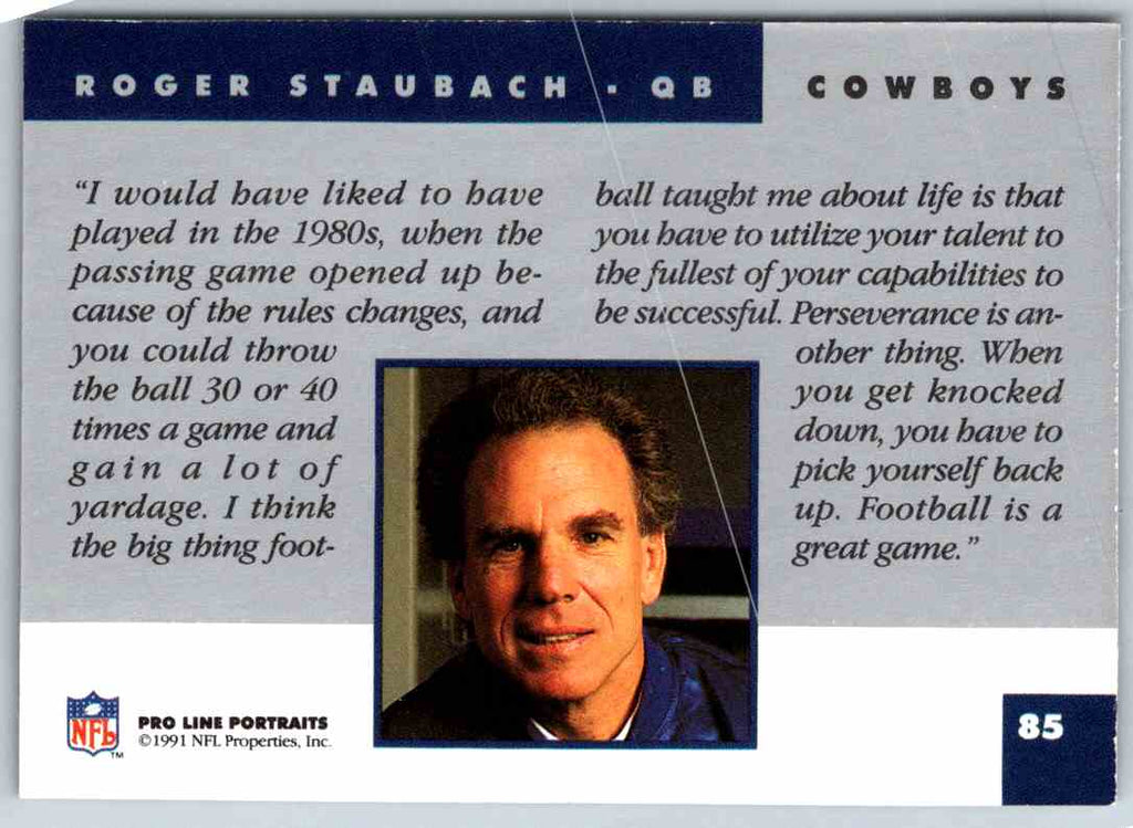 This 1991 ProLine Roger Staubach #85 card is a must-have for any collector of Dallas Cowboys memorabilia. Printed on high-quality cardstock, this card features a crisp image of Staubach in his Cowboys uniform. Staubach, the Hall of Fame quarterback, is widely regarded as one of the greatest players in Cowboys history, making this card a timeless piece of Cowboys memorabilia. Add this exclusive card to your collection and show your support for the Cowboys!
