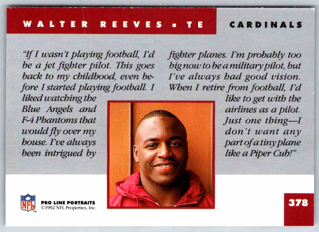 The 1991 ProLine Walter Reeves #378 is an iconic trading card that is sure to please any collector. This card features a vibrant and sharp picture of the former NFL star in his signature helmet and jersey. The back of the card showcases a detailed look at Walter's stats, awards and accolades. This card is in excellent condition and would make a great addition to any collection. Grab it before it's gone!