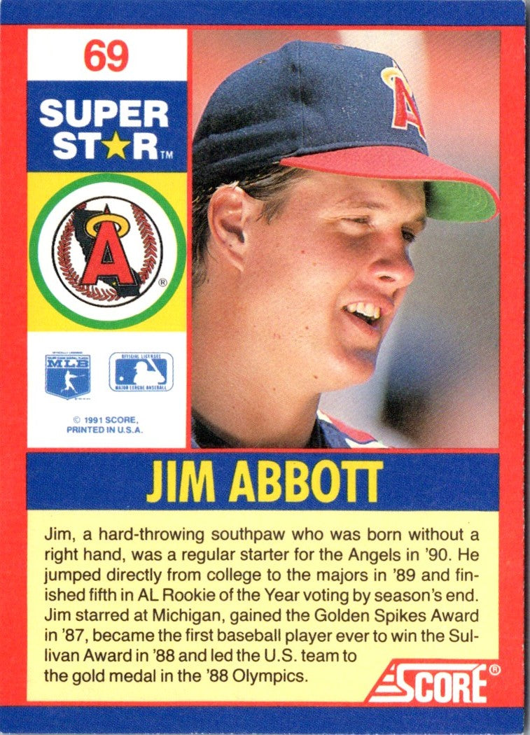 Description: 1991 Score 100 Superstars Jim Abbott #69