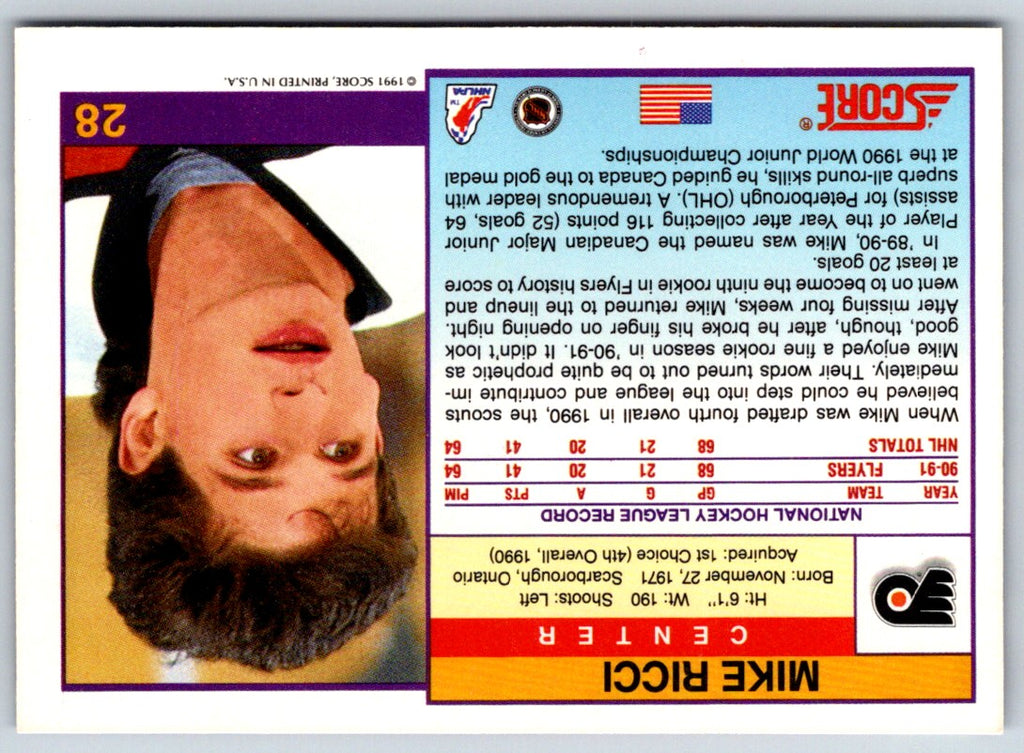 1991 Score American Mike Ricci #28