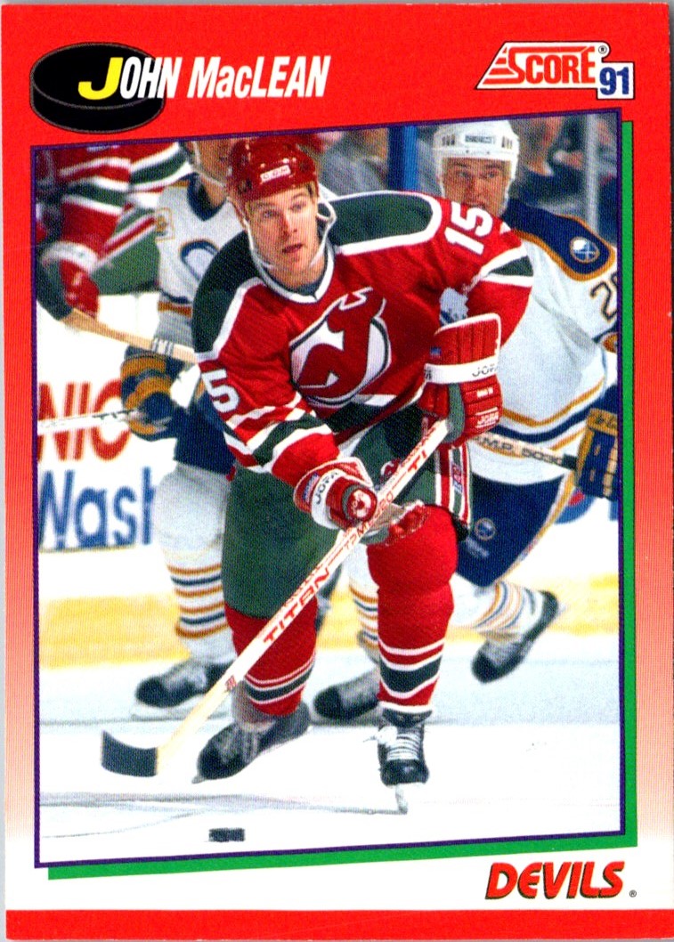 This 1991 Score John MacLean #210 card celebrates one of the most storied players in the history of the NHL. Featuring MacLean in his iconic New Jersey Devils uniform, this card is a must-have for any hockey fan. With an image of MacLean ready to take the ice and a detailed background of the Devils' logo, this card is sure to be a standout in any collection. MacLean was an integral part of the Devils' success in the 1990s, and this card is a great way to commemorate one of the greatest players in NHL history. Get your hands on this classic collectible today!