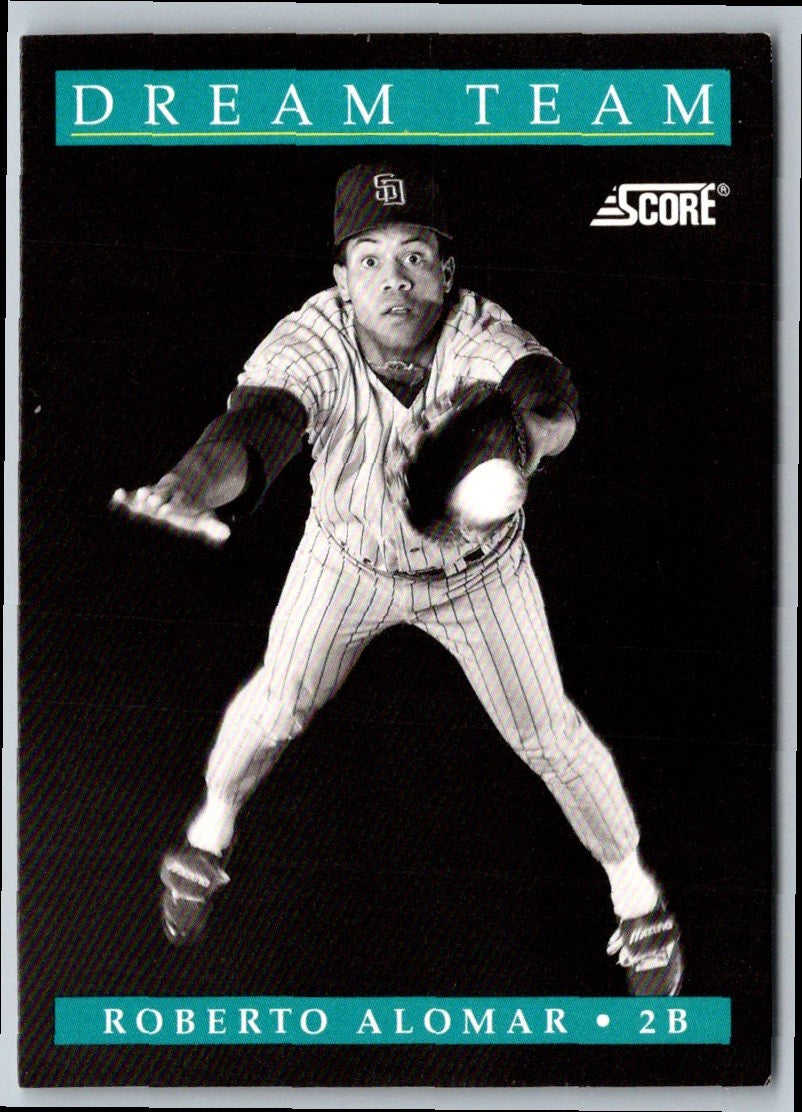1991 Score Roberto Alomar #887 San Diego Padres is a must-have for any baseball card collector. This card features Alomar in a classic Padres uniform in a batting stance. This card is in near-mint condition and showcases Alomar's batting stats from his impressive 1991 season. The back of the card includes a short bio and Alomar's career stats up to that point. This is a great item to add to your collection, not only to show off Alomar's talent, but also because it's a great souvenir of the 1991 San Diego Padres season.