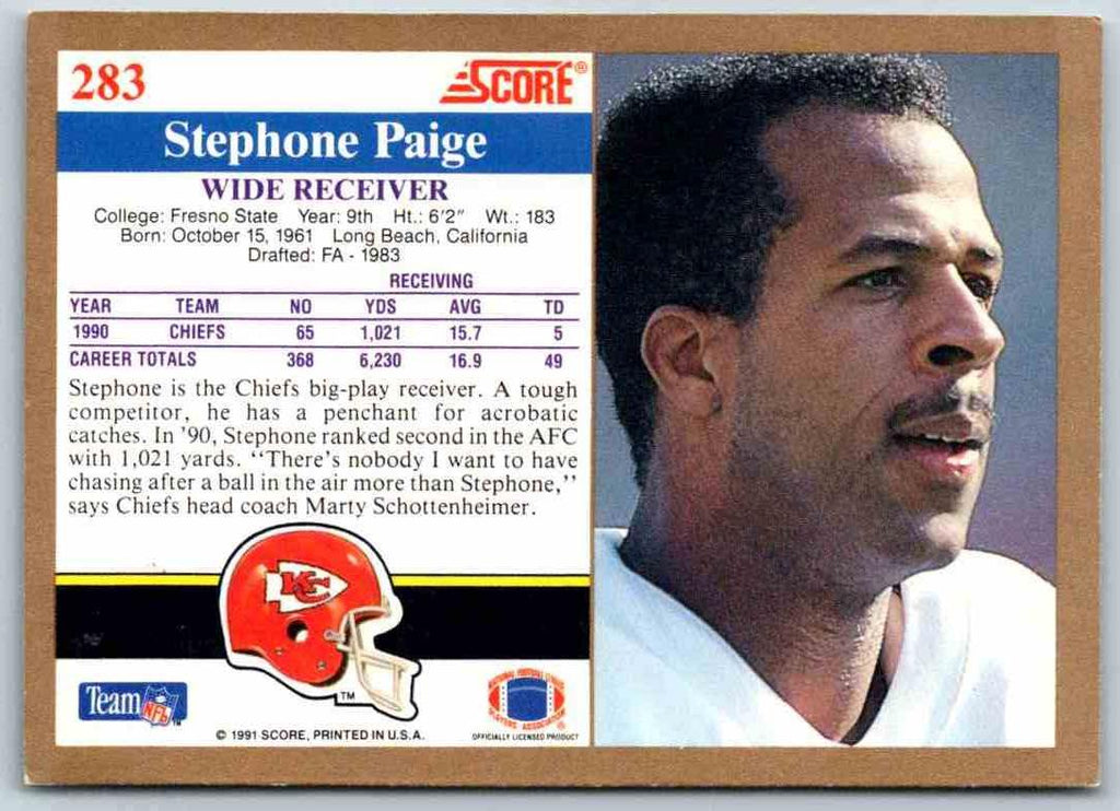 This 1991 Score Stephone Paige #283 card is in near-mint condition and is a must-have for any football card collector. Paige was a dynamic quarterback and was one of the league's most prolific passers. He was known for his accurate passing and his ability to make plays when the pressure was on. His 1991 Score card captures the intensity and fire he brought to the field each and every Sunday. Make sure you add this card to your collection today and experience the magic of Stephone Paige!