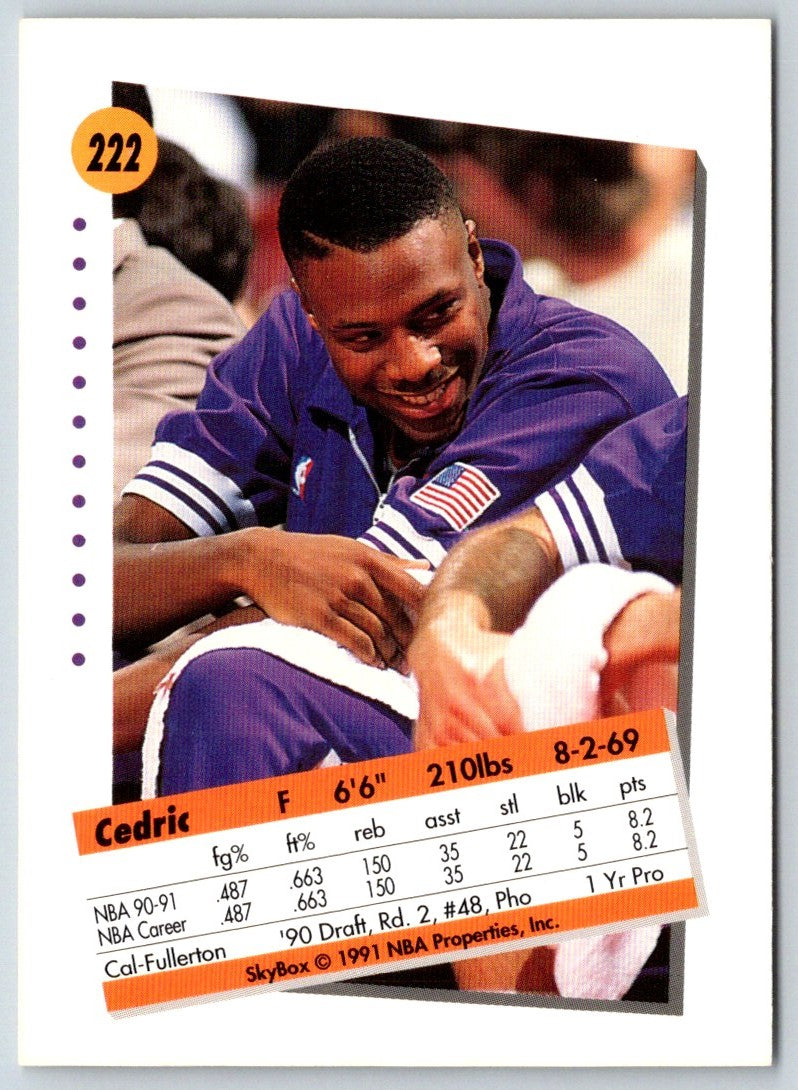 This 1991 SkyBox Cedric Ceballos #222 Phoenix Suns card will make any collector's day! The card features Cedric Ceballos in his Phoenix Suns uniform, with a high-quality full-color photo. This card is a must-have for any basketball fan and makes a great addition to any collection.