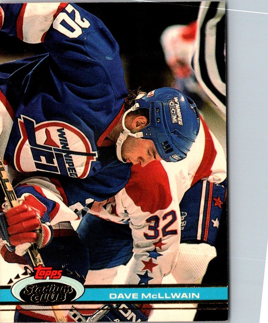 This 1991 Stadium Club Dave McLlwain #202 card from the Winnipeg Jets is a must-have for any collector. Featuring the sharpest, most vibrant colors on glossy cardstock, this card is sure to stand out in any collection. The detailed illustration on the front of the card captures the action on the ice, and the stats printed on the back give fans a look at McLlwain's impressive career. Get your hands on this unique card and add it to your collection today!