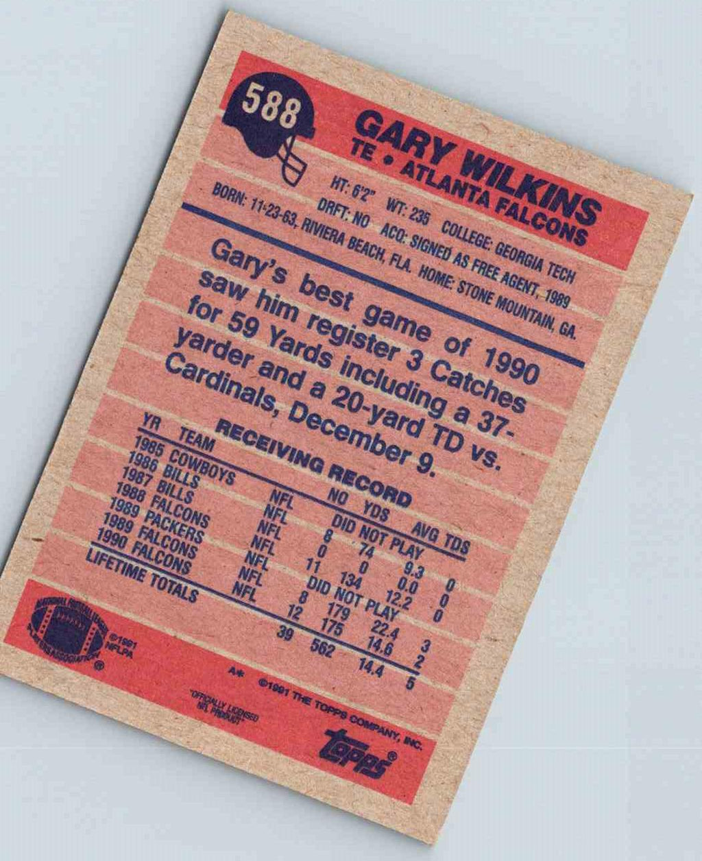 This 1991 Topps Football card features Gary Wilkins, the former linebacker for the San Francisco 49ers. Wilkins was part of the celebrated 49ers' squad that won Super Bowl XXIII. His card showcases him in his 49ers uniform, with a great action shot of him tackling an opponent. It is a classic card from one of the most celebrated teams in the history of the NFL. Add this card to your collection and you will have a piece of football history.
