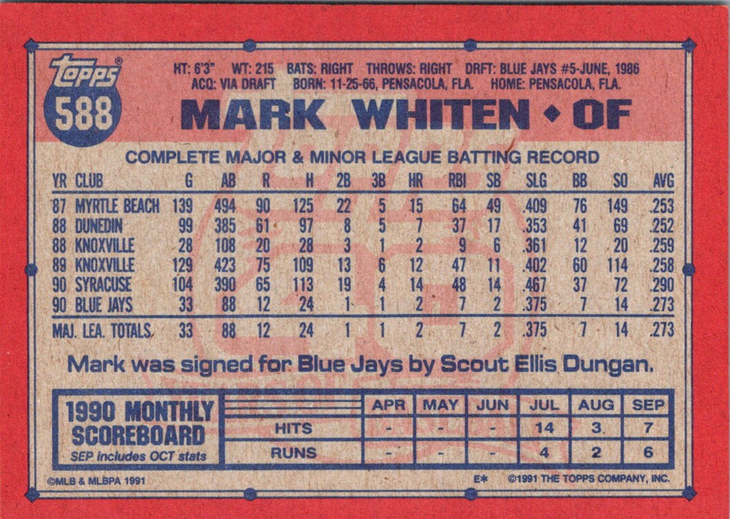 Description: 1991 Topps Mark Whiten #588