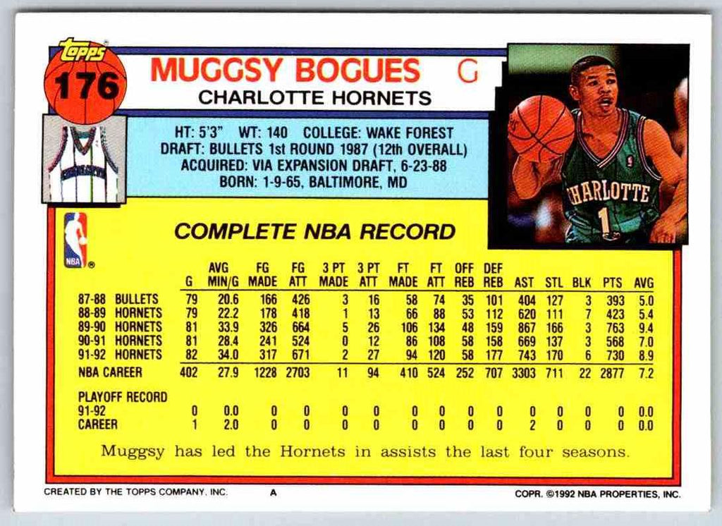 This 1991 Topps Muggsy Bogues #176 card is a must-have for any basketball fan. Featuring a glossy photo of the 5'3" NBA star in a Charlotte Hornets jersey, this classic card is sure to stand out in any collection. With a career spanning 14 seasons, Bogues was known for his speed, passing, and defensive abilities. His tenacity and play-making skills earned him the nickname "Muggsy Magic." This card also features a full-color action shot of Bogues taking it to the hoop. Add it to your collection today and own a piece of basketball history!