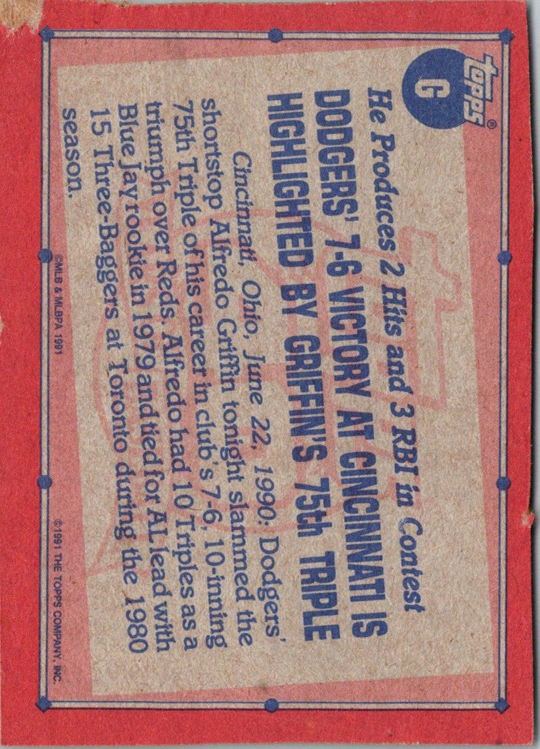 1991 Topps Wax Box Cards Alfredo Griffin #G