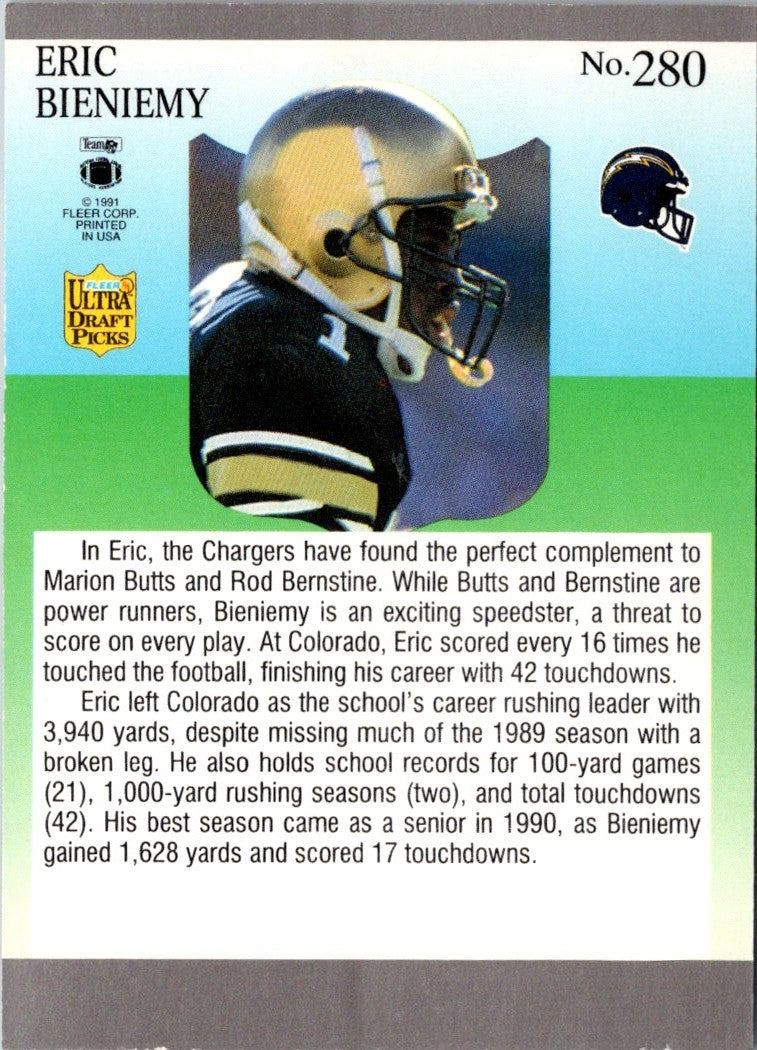 Description: 1991 Ultra Eric Bieniemy #280 Rookie