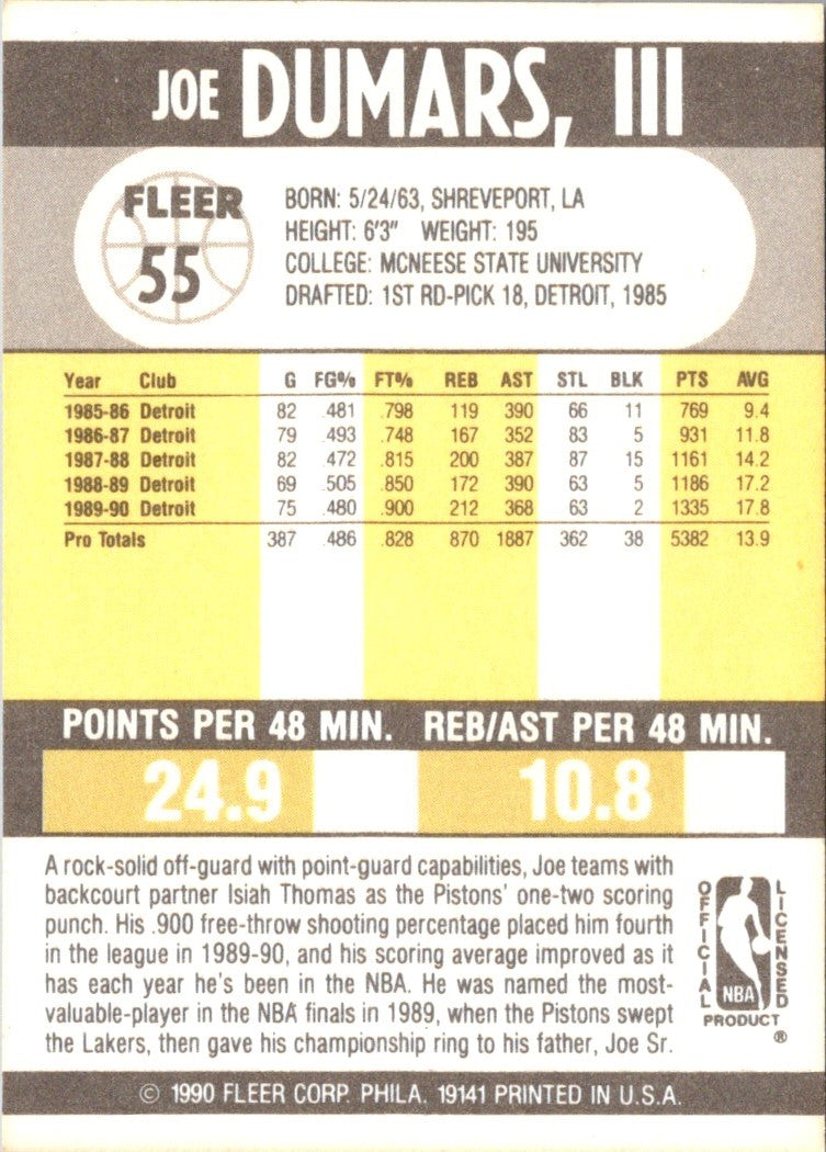 Description: 1991 Unocal Detroit Pistons Joe Dumars #5
