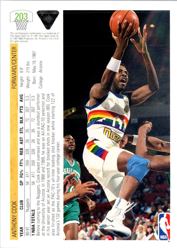 Description: 1991 Upper Deck Anthony Cook #203 Rookie