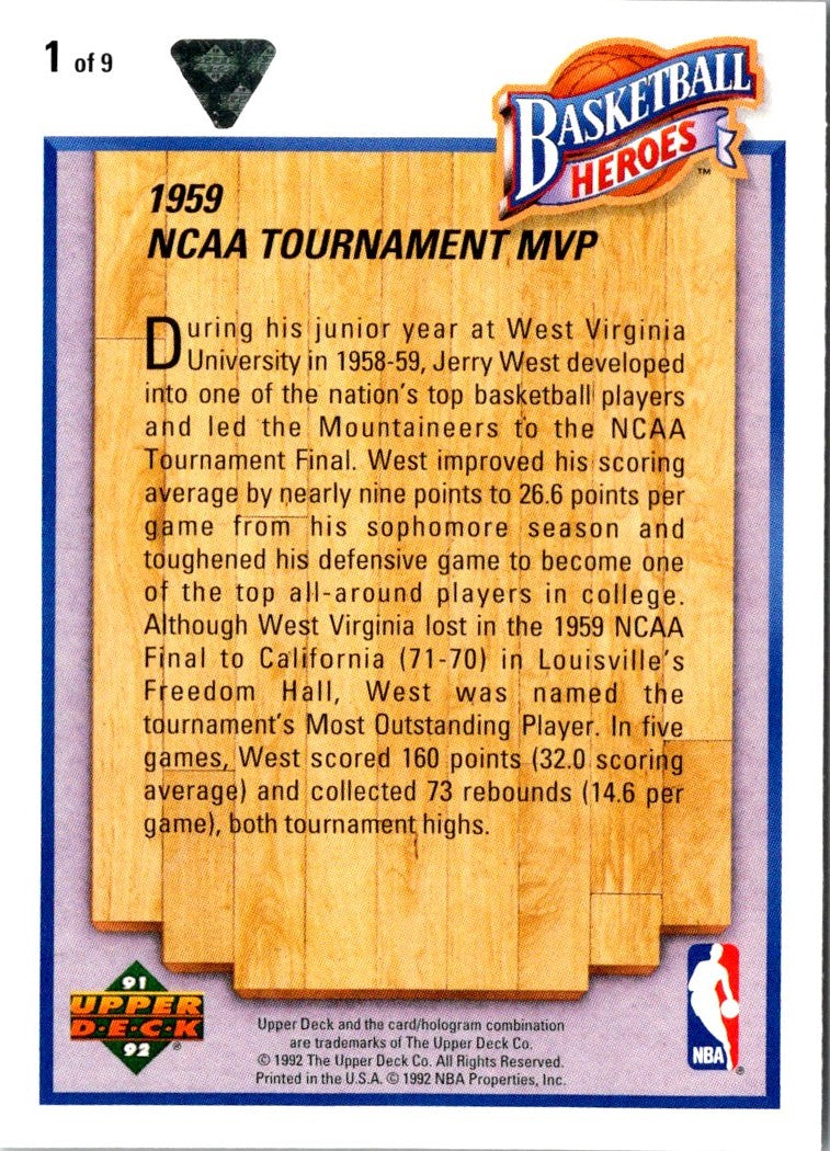 Description: 1991 Upper Deck Basketball Heroes Jerry West Jerry West #1