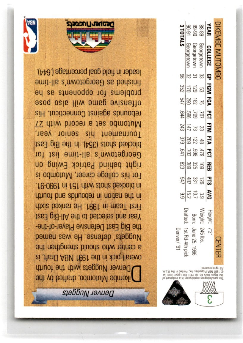 1991 Upper Deck Dikembe Mutombo #3