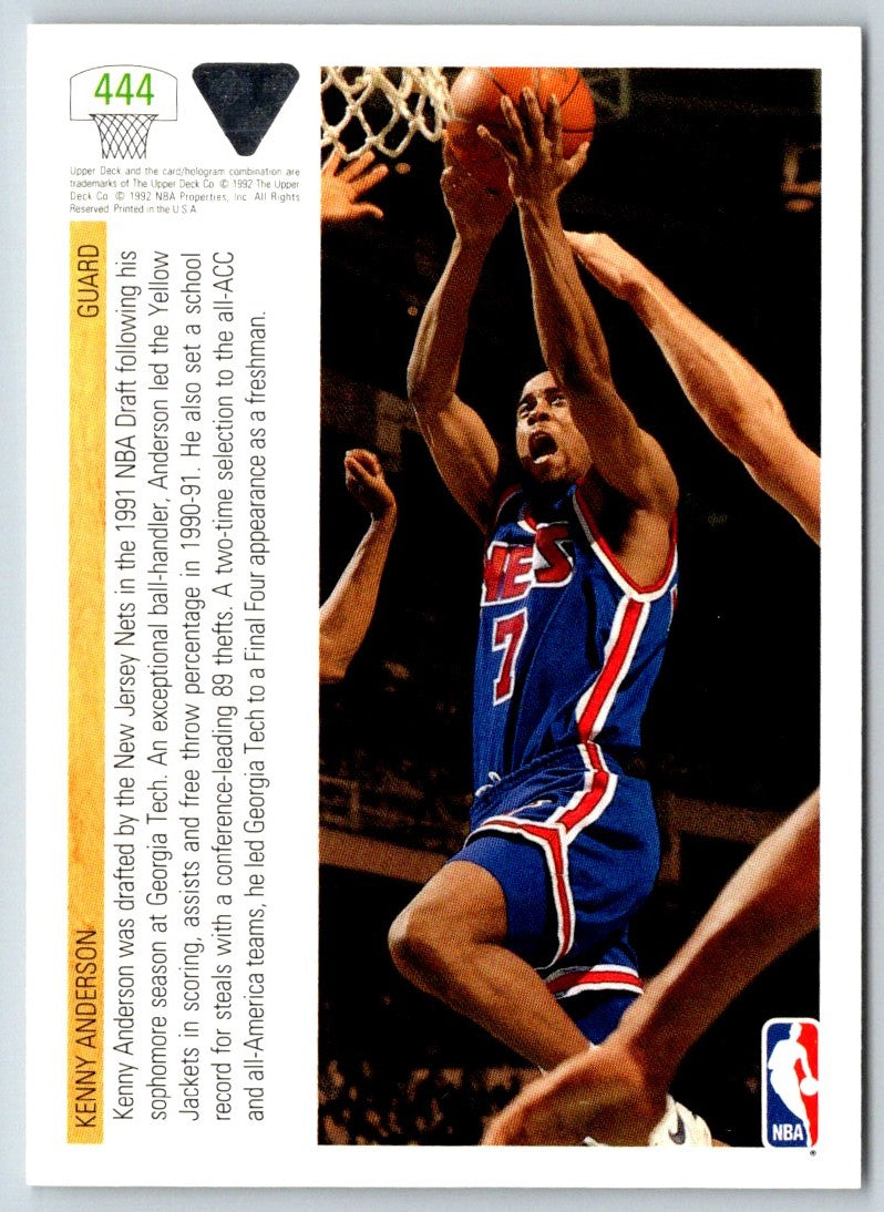 Kenny Anderson was one of the top point guards of the 1990s. Anderson was selected by the New Jersey Nets with the 2nd overall pick of the 1991 NBA Draft and led the Nets to their first playoff appearance since 1986. Now you can commemorate Anderson's rookie season with this 1991 Upper Deck card. This card features an action shot of Anderson in his Nets uniform from that season, capturing the intensity and energy he brought to the court. Add this card to your collection and celebrate the legacy of Kenny Anderson.