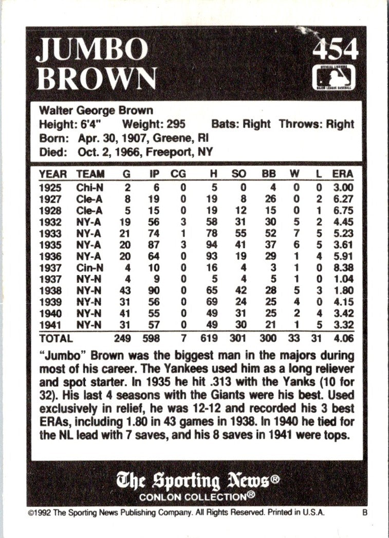 Description: 1992 Conlon Collection TSN Jumbo Brown #454