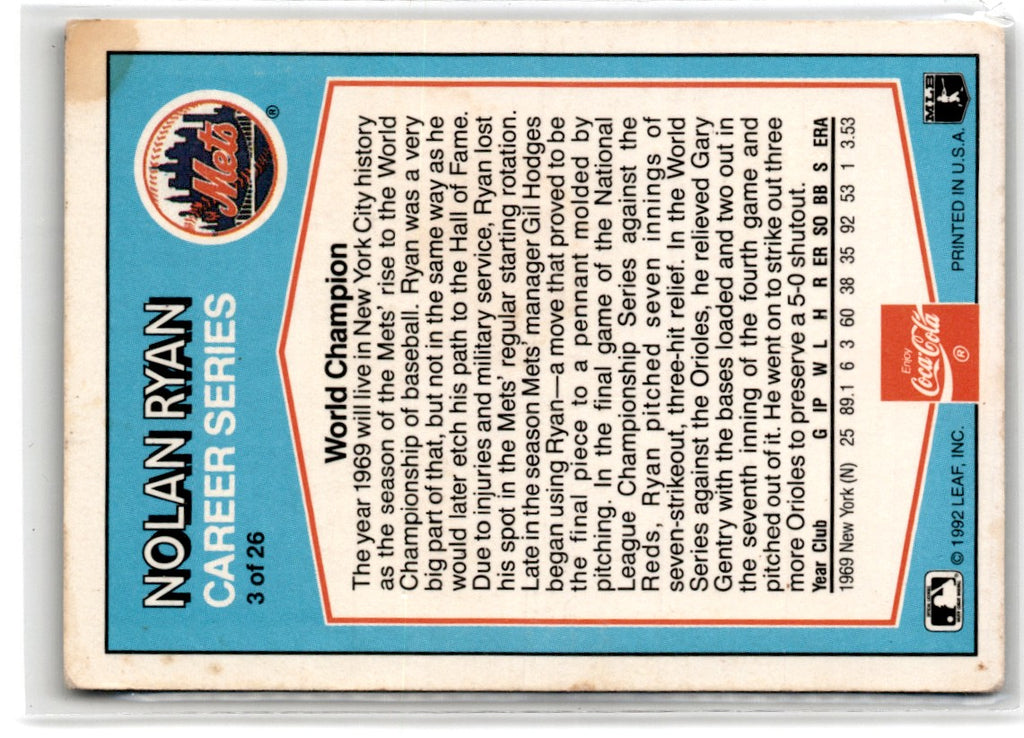 Description: 1992 Donruss Coca-Cola Nolan Ryan Nolan Ryan #3