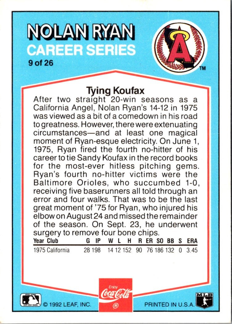 Description: 1992 Donruss Coca-Cola Nolan Ryan Nolan Ryan #9