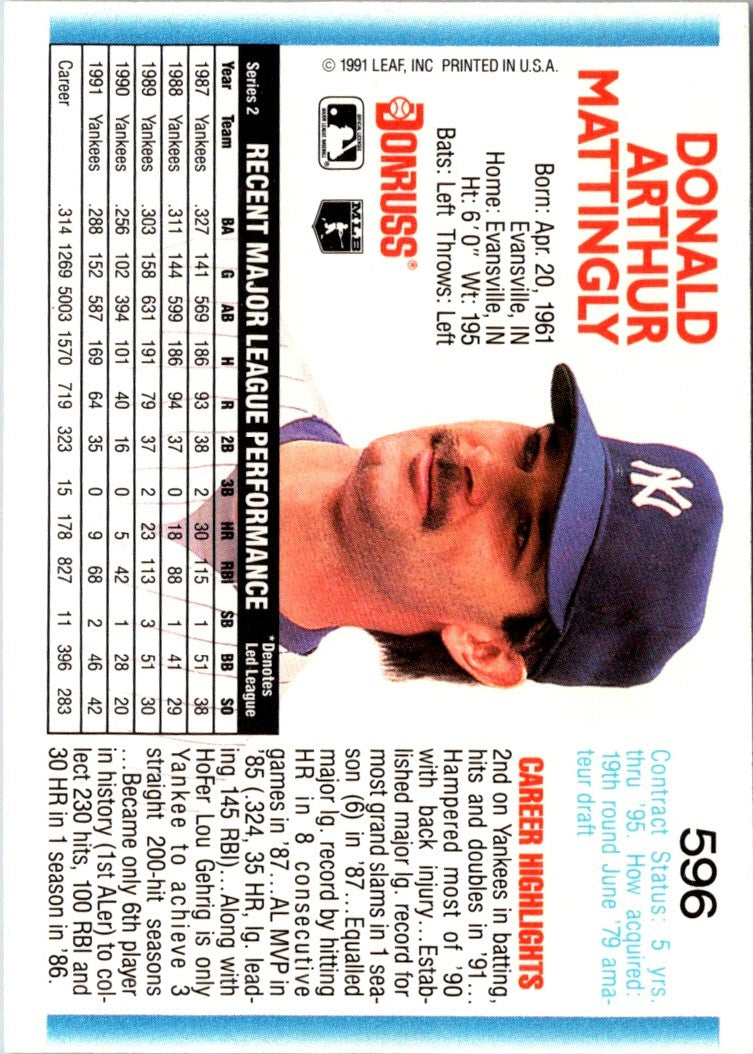 Description: 1992 Donruss Don Mattingly #596