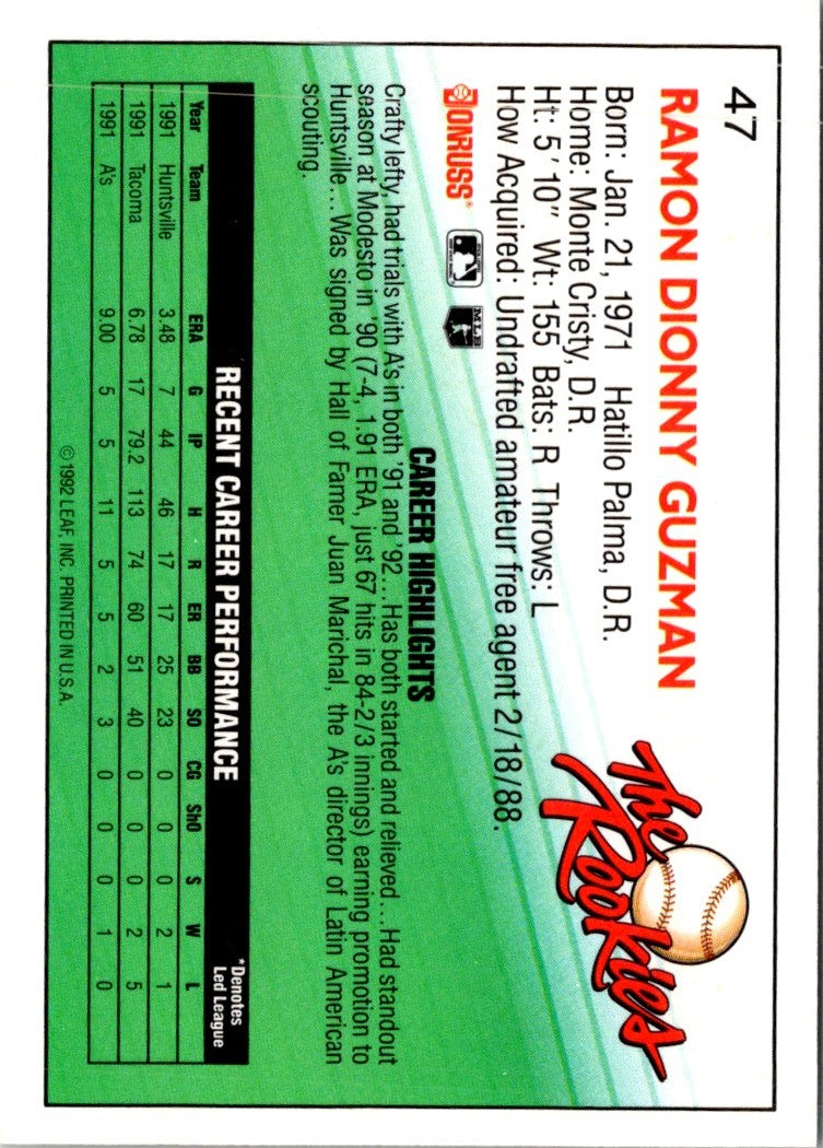Description: 1992 Donruss The Rookies Johnny Guzman #47 Rookie