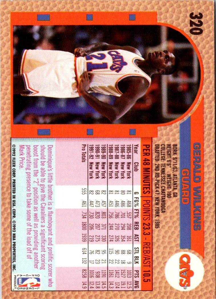 Description: 1992 Fleer Gerald Wilkins #320