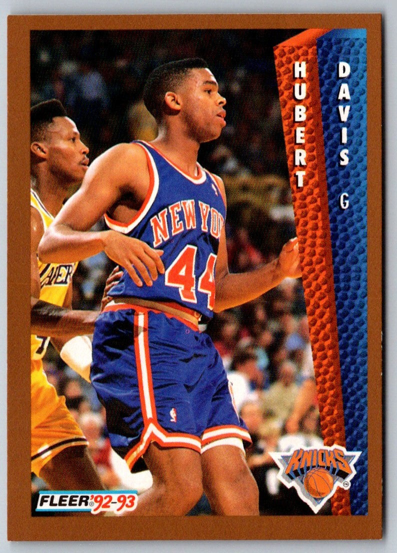 This 1992 Fleer Hubert Davis #395 card features a legendary New York Knicks player, Hubert Davis, in his classic blue and orange team uniform. The card is in Near Mint condition and features a classic image of Hubert Davis in action on the court. The card is a great addition to any Knicks fan's collection, and an excellent way to show your support for the team. The card is perfect for any collector looking to keep their collection up to date with all the great players in the history of the Knicks. Get your hands on this card today and add a historic piece to your collection!