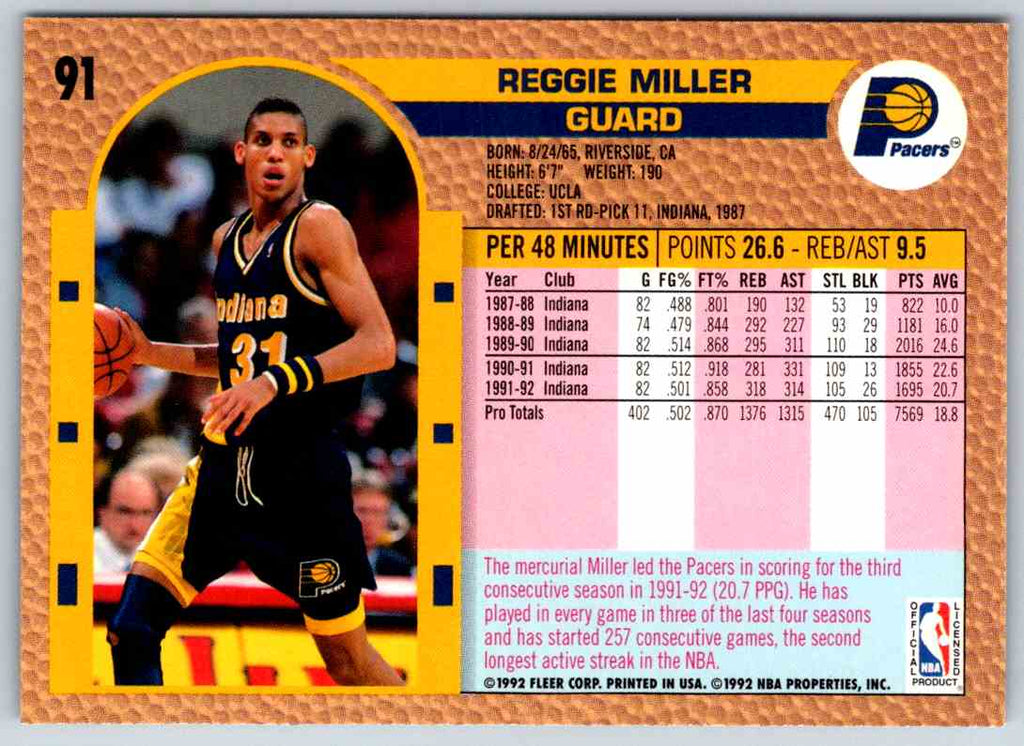 1992 Fleer Reggie Miller #91