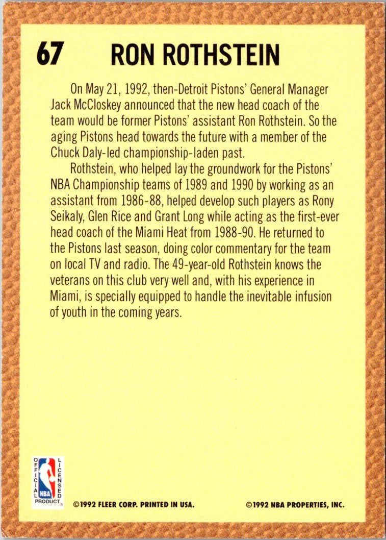 Description: 1992 Fleer Ron Rothstein #67