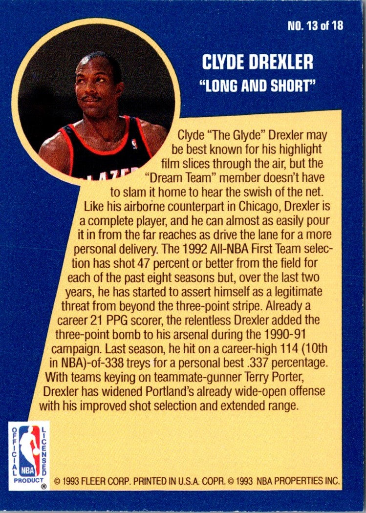 1992 Fleer Sharpshooters Clyde Drexler #13