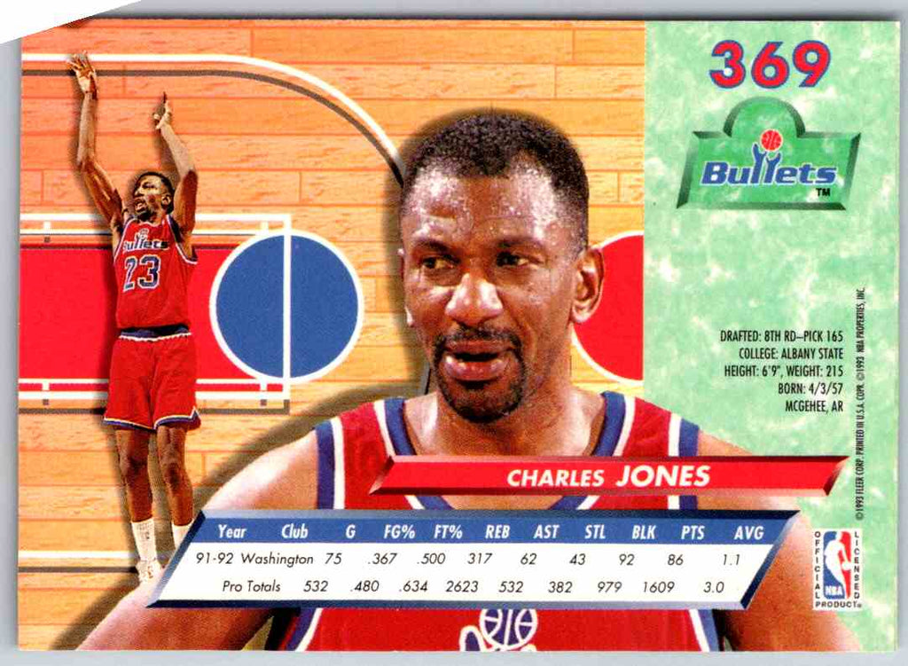 This 1992 Fleer Ultra Charles Jones #369 card is a must-have for any basketball enthusiast. It features a stunning image of the legendary shooting guard and is sure to be the center of any sports memorabilia collection. The glossy card stock and glossy finish on the image make it a great addition to any collection. This card is sure to be a conversation starter and a great conversation piece for any fan of the sport. Get your hands on this amazing piece of basketball history before it's gone!