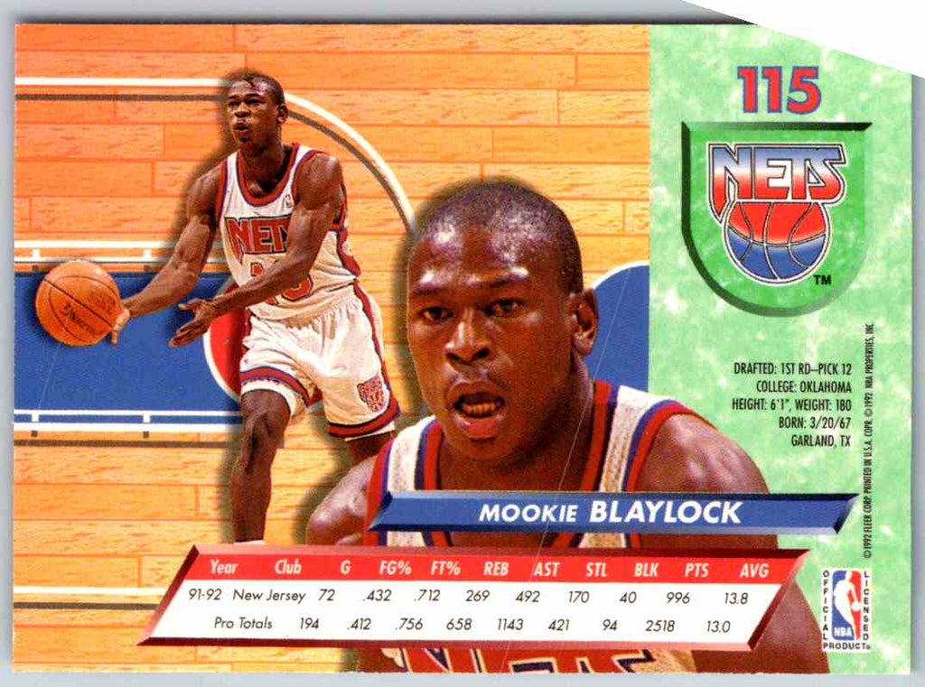 The 1992 Fleer Ultra Mookie Blaylock #115 card offers an eye-catching design that showcases the skill of one of the NBA's most dynamic point guards. Blaylock is shown in a mid-air defensive pose, ready to make a play and protect the paint. The card is printed on high-quality glossy stock and features the signature Ultra borders. This card is a must-have for any collection and a great way to remember one of the all-time greats.