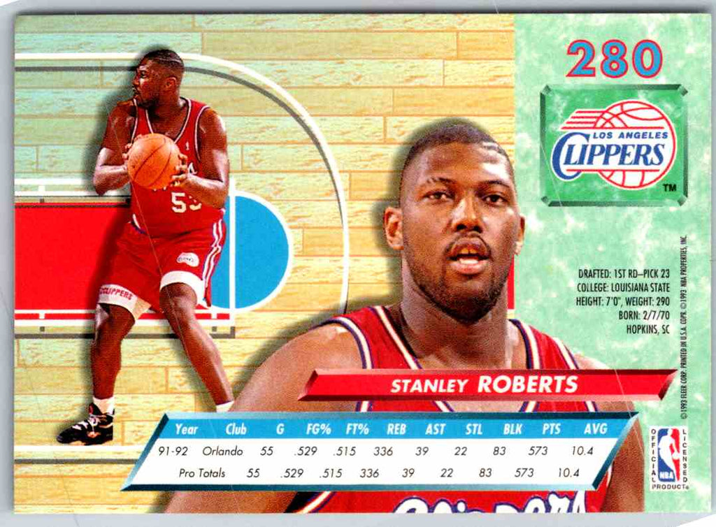 This 1992 Fleer Ultra Stanley Roberts #280 is a must-have for any basketball fan. Featuring an action shot of Roberts in full flight, the card is a great addition to any collection. Printed in stunning detail on durable cardboard, this card will stand the test of time. Get your hands on this classic card today and add a piece of basketball history to your collection.