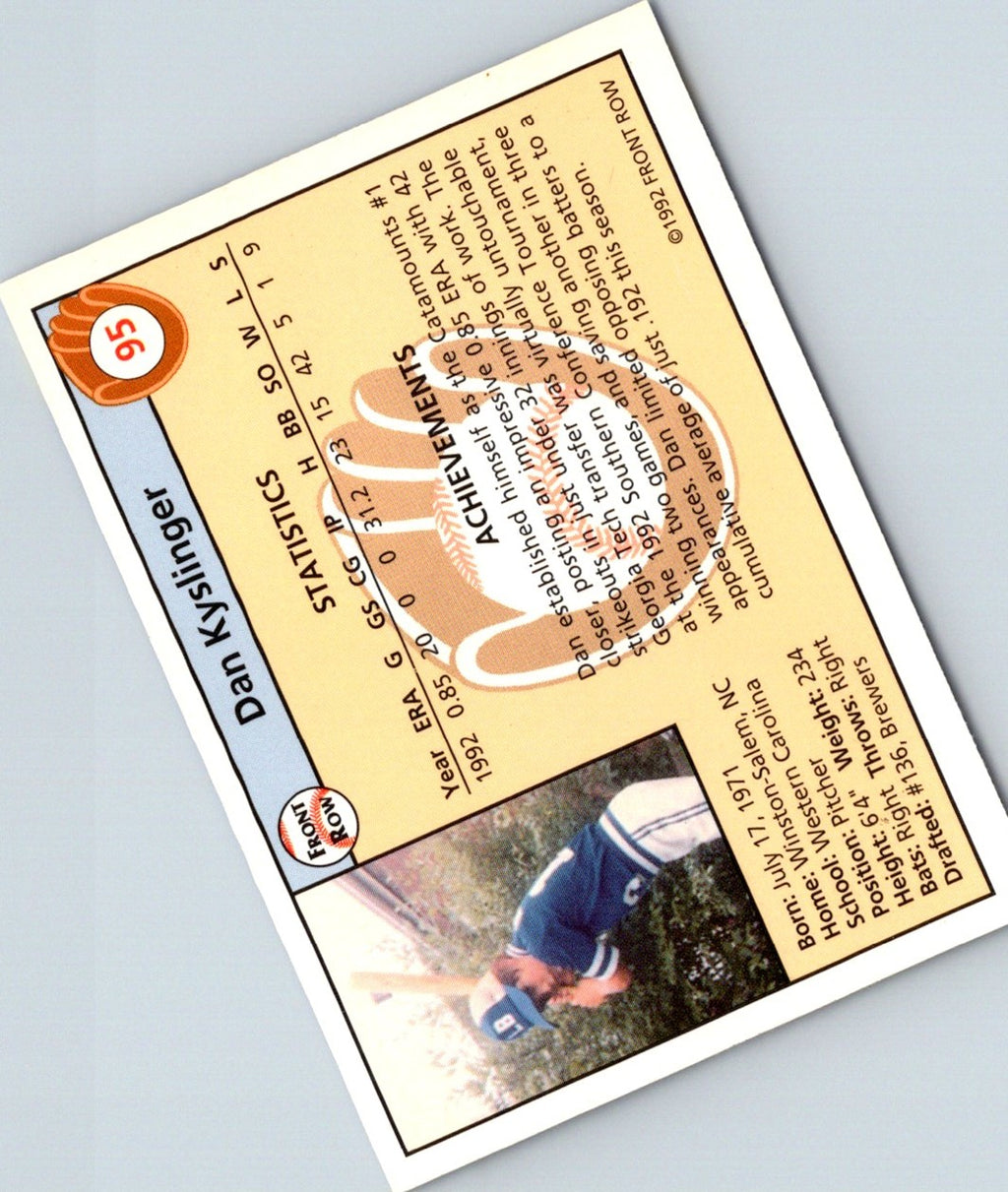 This 1992 Front Row Draft Picks card of Milwaukee Brewers pitcher Dan Kyslinger is an essential item for any fan of the team. Featuring Kyslinger in his Brewers uniform, this card is sure to be a great addition to any baseball card collection. With its vibrant colors and high-quality images, this card is sure to be a hit with all baseball fans. Celebrate the incredible success of the Milwaukee Brewers with this classic card, and show your support for the team!