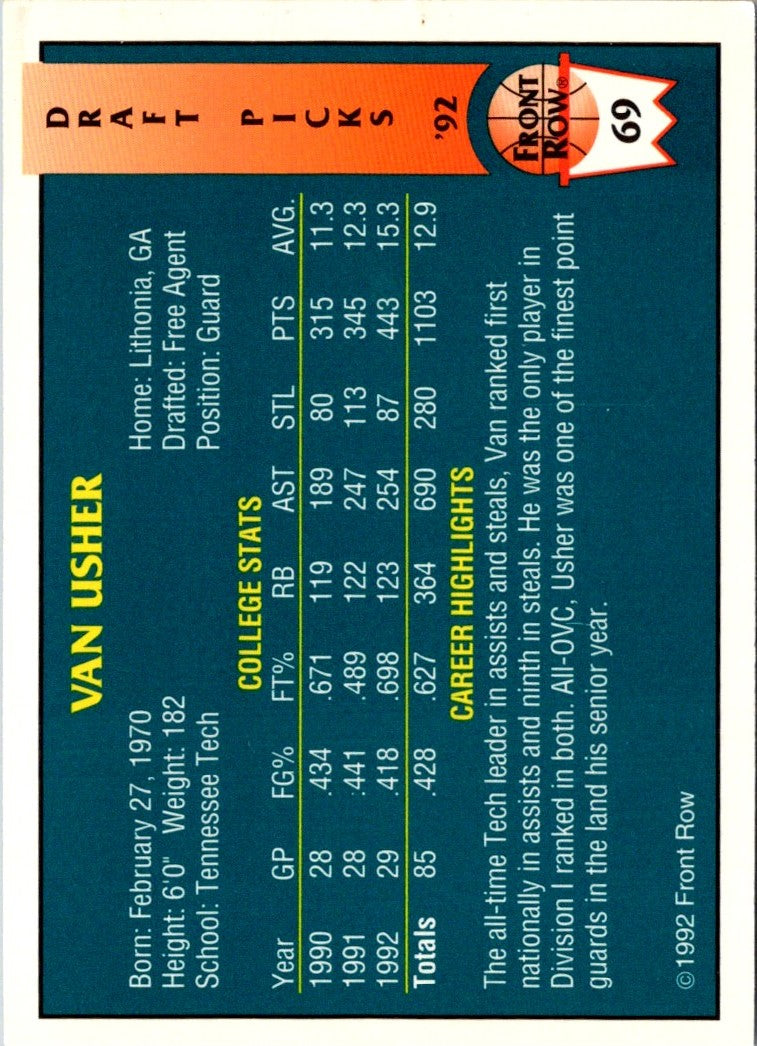 Description: 1992 Front Row Draft Picks Gold Van Usher #69