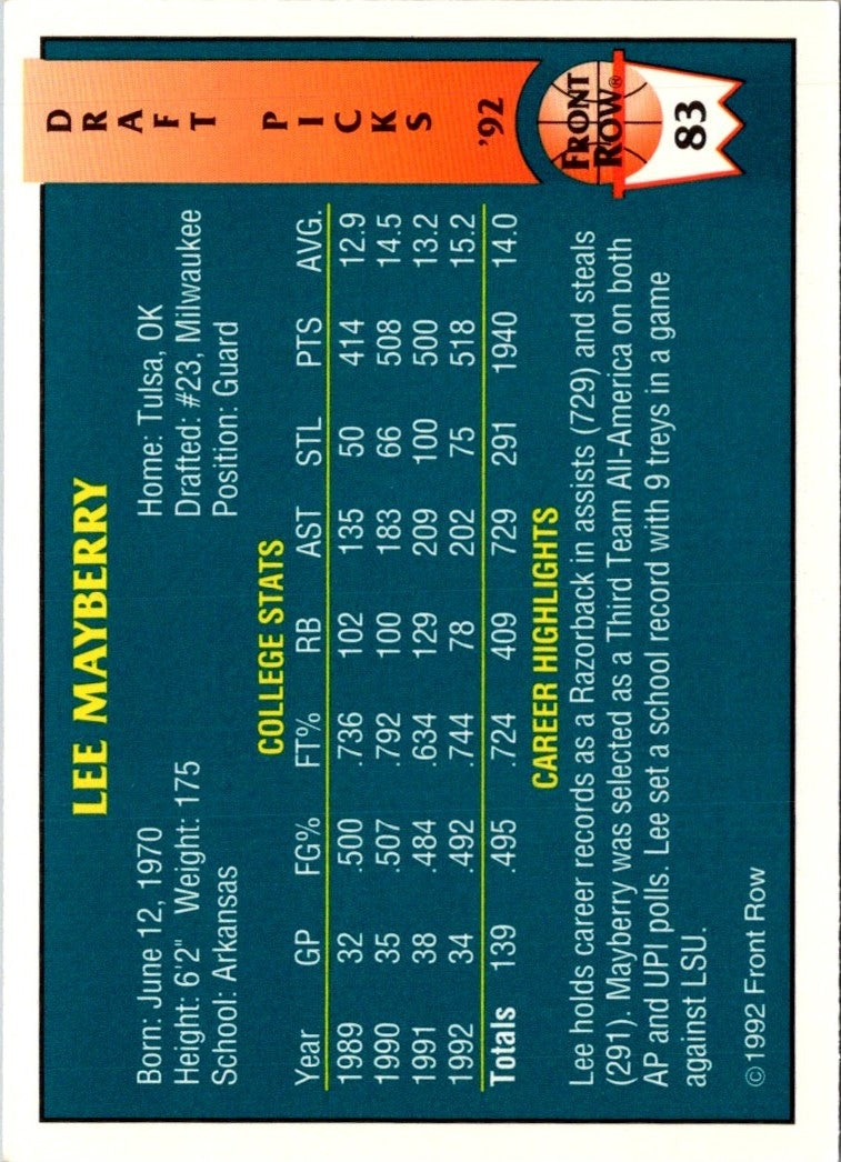 Description: 1992 Front Row Draft Picks Lee Mayberry #83
