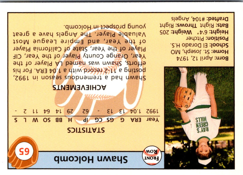 Description: 1992 Front Row Draft Picks Shawn Holcomb #65