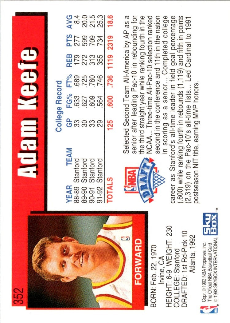 Description: 1992 Hoops Adam Keefe #352 Rookie